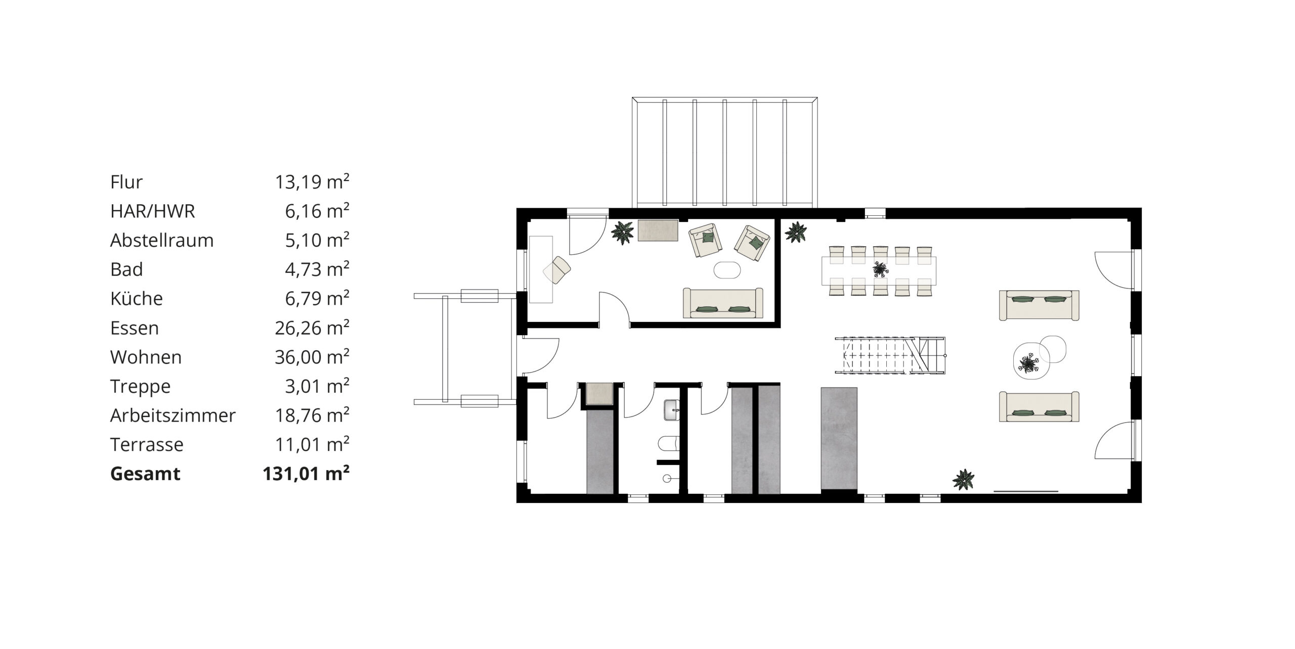 Mit seinem durchdachten und flächeneffizienten Grundriss schafft das GREEN STEEL HOME I Plus auf ca. 211 m² Raum für Ihren Wohntraum.