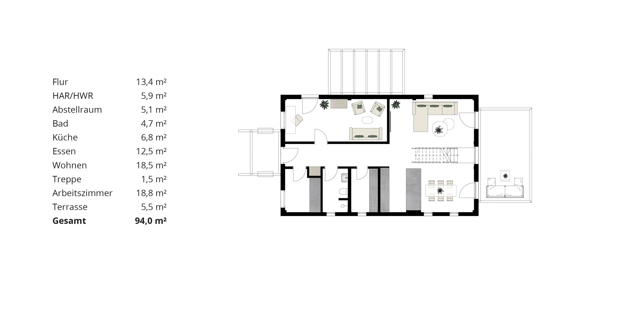 Mit seinem durchdachten und flächeneffizienten Grundriss schafft das GREEN STEEL HOME I auf ca. 153 m² Raum für Ihren Wohntraum.